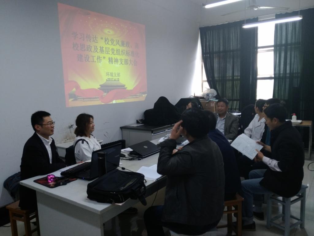 环境系党支部在东校区建工南楼211召开专题会议,学习贯彻2017年校党风廉政建设工作会、高校思政及基层党组织标准化建设的会议精神和工作要求。支部全体党员参加了会议。