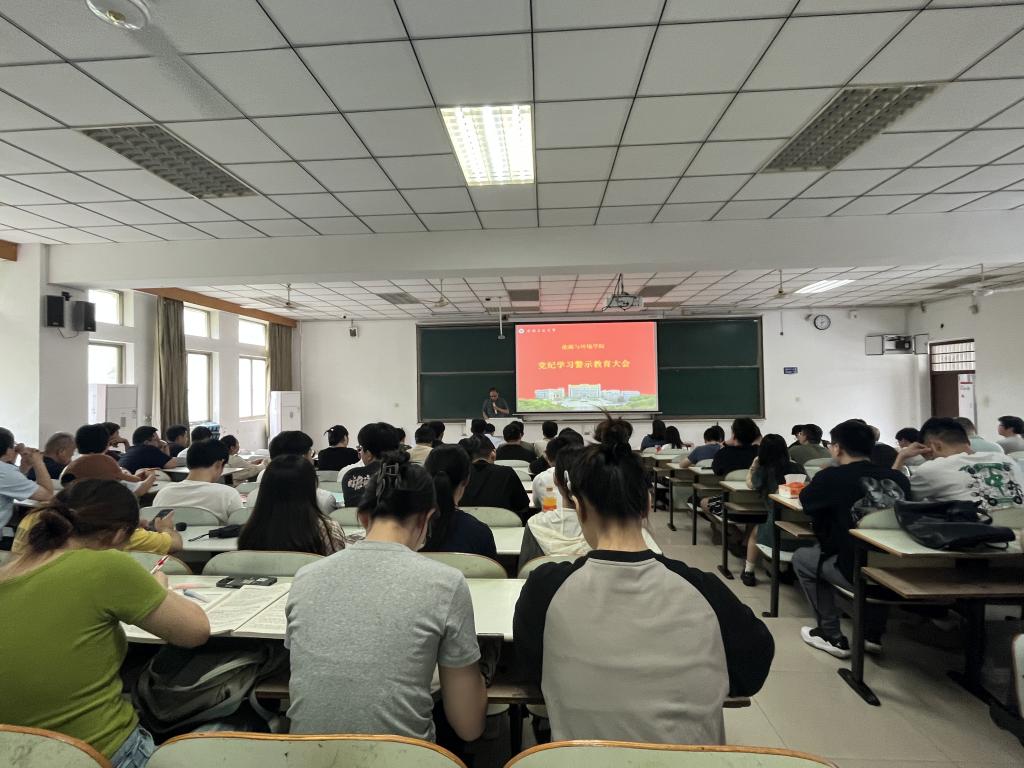 在教三南303召开党纪学习教育警示教育大会。会议由学院党委书记谢文平主持。学院全体教职工党员,学生支部书记、支委和学生党员代表参加了会议。