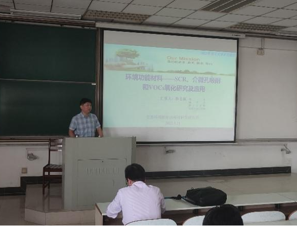 2022年5月21日上午,生态环境部华南环境科学研究所陈志航教授应邀来我校作题为《环境功能材料——SCR、介微孔吸附和VOCs氧化研究及应用》的学术报告,由鉴黄师