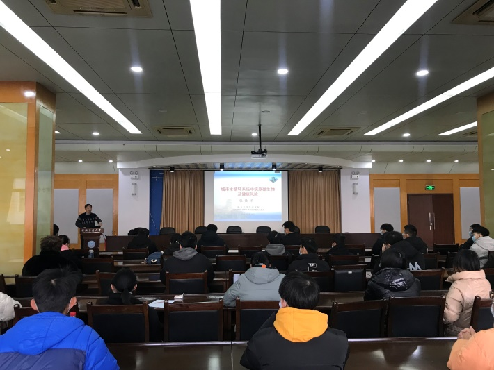 进行学术交流,为师生作了题为“城市水环境系统中病原微生物及健康风险”的学术报告。报告会在佳山校区学术会议中心二楼报告厅举行,由钱付平院长主持,环境系教工、研究生、部分本科生及“生物膜法水质净化及利用技术”教育部工程研究中心人员参加了报告会。