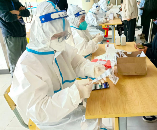 辅导员化身“大白”在核酸检测现场为同学们采集信息