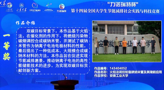 聂晓康等同学的作品《火焰法调控制备碳纳米管及其储能应用》获全国一等奖(指导教师:楚化强教授),冶金工程学院李亚飞等同学的《一种氮氧化物、二噁英协同减排的氧化石墨烯改性新型铈基催化剂》获全国三等奖(指导教师:龙红明教授、张洪亮副教授);此外,鉴黄师