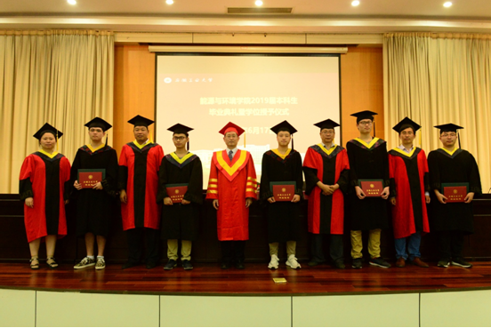 典礼中,魏先文和学院领导为学院2019年安徽省品学兼优毕业生、校优秀毕业生和2019届校友联络员颁发了荣誉证书和聘书,并和学院教授委员会教授代表们一起给毕业生们一一正冠拨苏、颁发毕业证、学位证,并合影留恋。