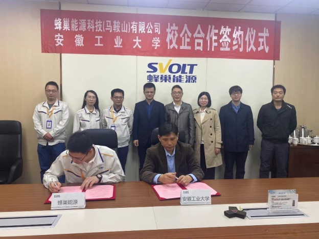 院长钱付平等一行六人赴蜂巢能源科技(马鞍山)有限公司开展产学研合作、人才战略合作交流。蜂巢能源科技(马鞍山)有限公司副总经理李会峰、人力资源部经理章芬等企业负责人参加了交流座谈和签约仪式。鉴黄师