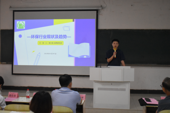 最后,优秀校友代表、环境工程专业2010届校友、生态环境部南京环境科学研究所助理研究员、扬州历史文化名城研究院特聘研究员谢文逸博士结合国家能源与环境发展状况做了题为《环保行业现状及趋势》学术报告。