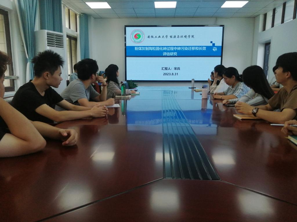宋兵博士作了粉煤灰制陶粒固化砷过程中砷污染迁移和长效评估研究的学术报告,科研副院长楚化强主持报告会。