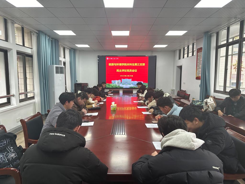 本科生第三支部于2024年2月28日在能源楼325召开民主评议党员工作会议。支部全体党员及非党员学生代表到会。会议严格按照评议内容要求和评议工作程序,开展党员民主评议。