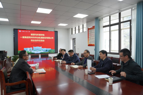 邀请一重集团常州市华冶轧辊股份有限公司董事长汤道华一行4人来校开展校企合作交流,学院班子全体成员、毕业班辅导员及部分专业教授代表在能源楼325会议室交流座谈。