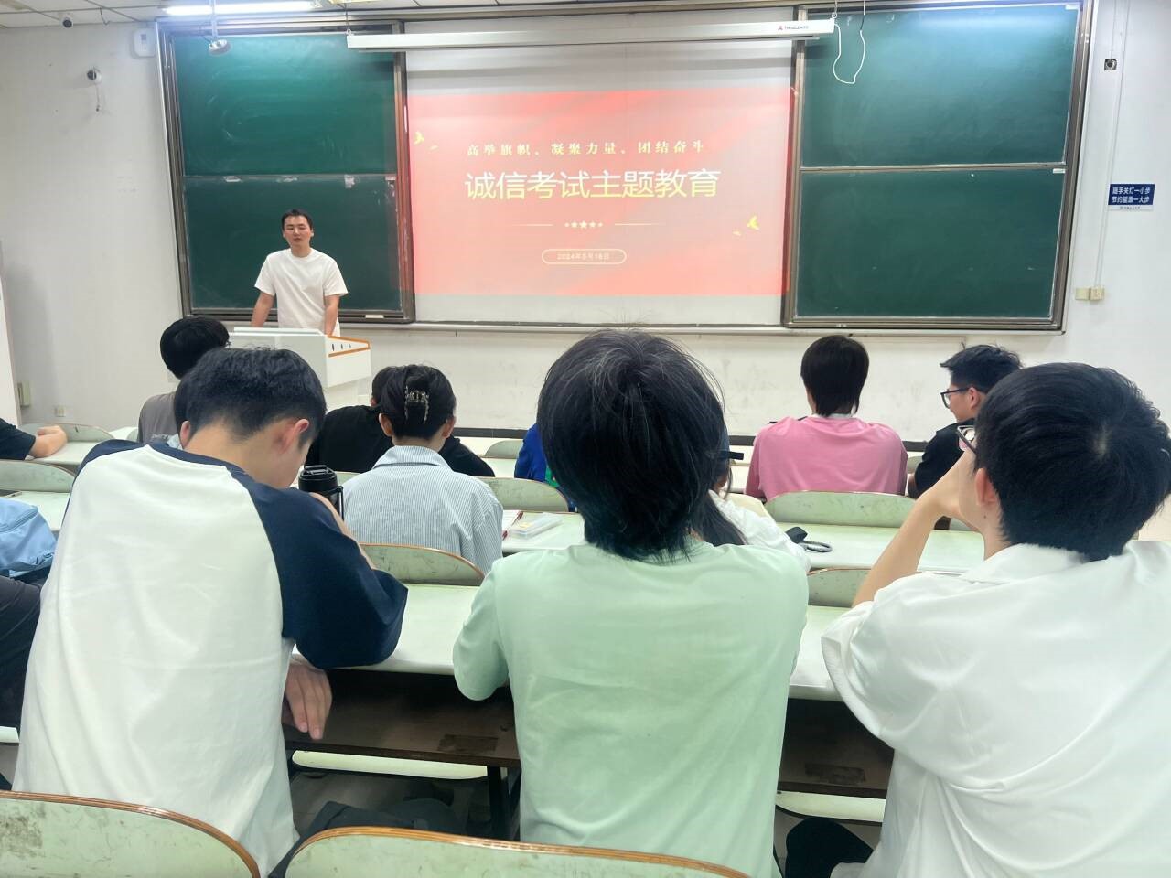 对于个人而言诚实守信是立身之本,是社会中的交往之道,更是立业之基。沈厚发强调了坚持诚信原则、弘扬诚信精神的重要意义及价值,他要求同学们不仅要认识到诚信的重要意义,也要践行诚信道德,做到知行合一、以知促行。随后,同学们集体学习了诚信考试相关法律法规的具体内容,包括《国家教育考试违规处理办法》《鉴黄师