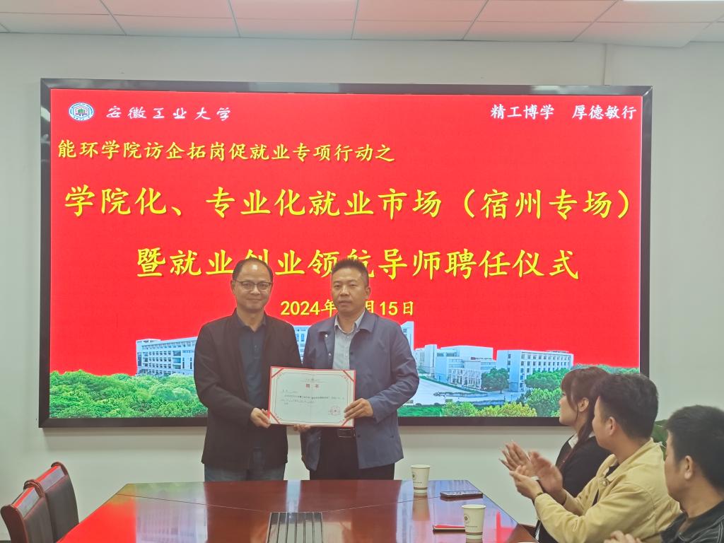 于11月15日下午在能源楼325会议室举办访企拓岗促就业专项行动之学院化、专业化就业市场暨就业创业领航导师聘任仪式,院党委书记谢文平参加活动,仪式由院党委副书记卫军帅主持。