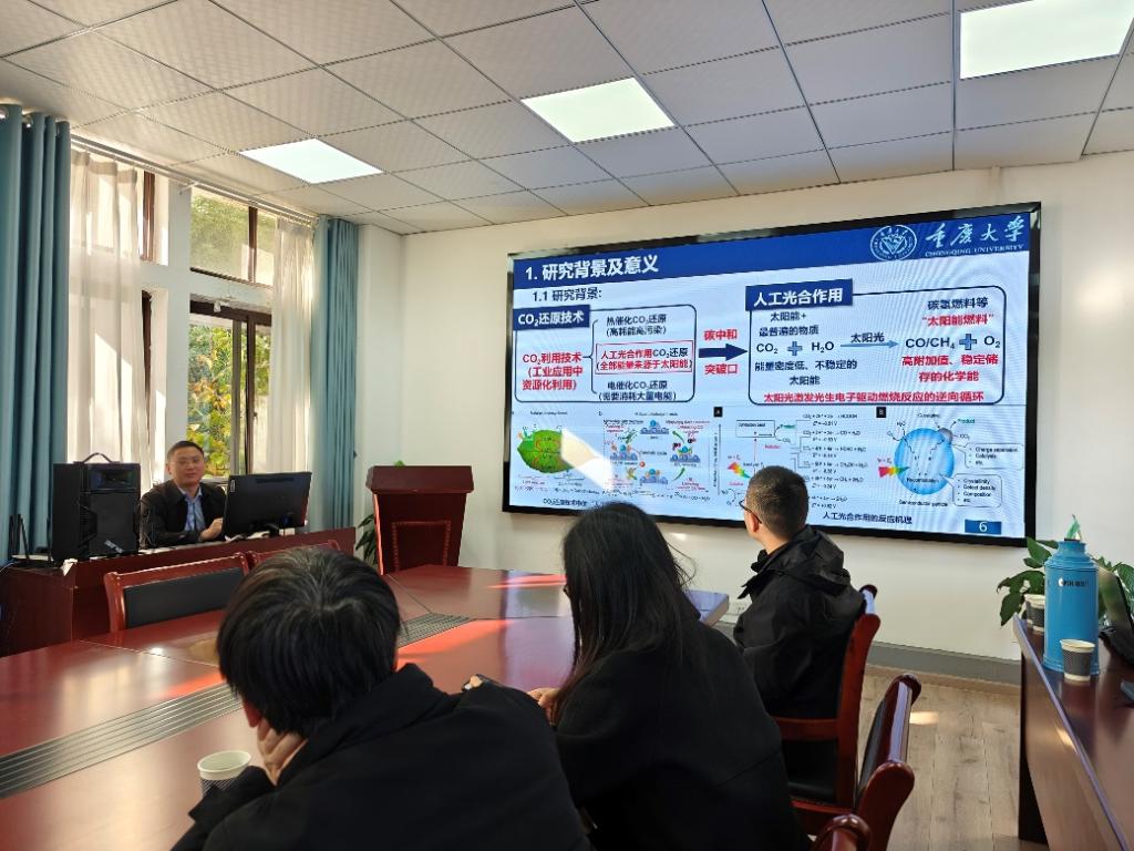 特邀重庆大学杨仲卿教授在能源楼325会议室为师生作题为“人工光合作用制备碳氢燃料的气固相反应表界面调控机制”的学术报告。本次活动由科研副院长楚化强主持,学院相关师生参加了报告会。