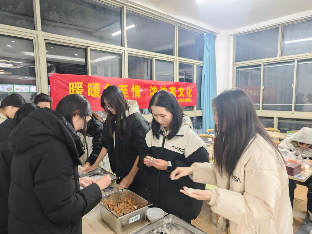 2024级学生于冬至日前夕在佳山校区二食堂举办了“暖暖冬至情 浓浓家文化”主题校园文化活动。2024级辅导员吴飞、范浩东共同参与。