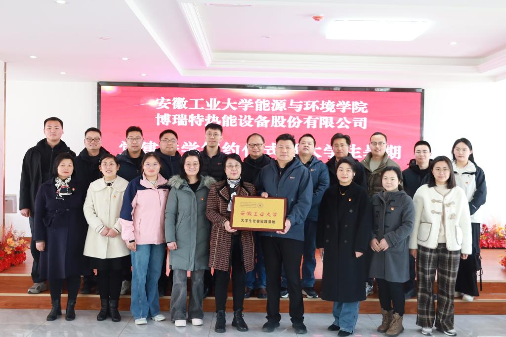 始终秉持"高标准、严要求"的办学传统,感谢博瑞特与安工大的血脉联系,截至目前,已有17位安工大校友入职博瑞特,其中涌现出“宣州工匠”等多名技术管理高管骨干,希望以此次合作为契机,在人才培养、技术攻关、成果转化等领域开展深度合作,打造校企协同育人新范式。会上,顾明言代表学校为博瑞特热能设备股份有限公司进行"大学生社会实践基地"授牌,鉴黄师