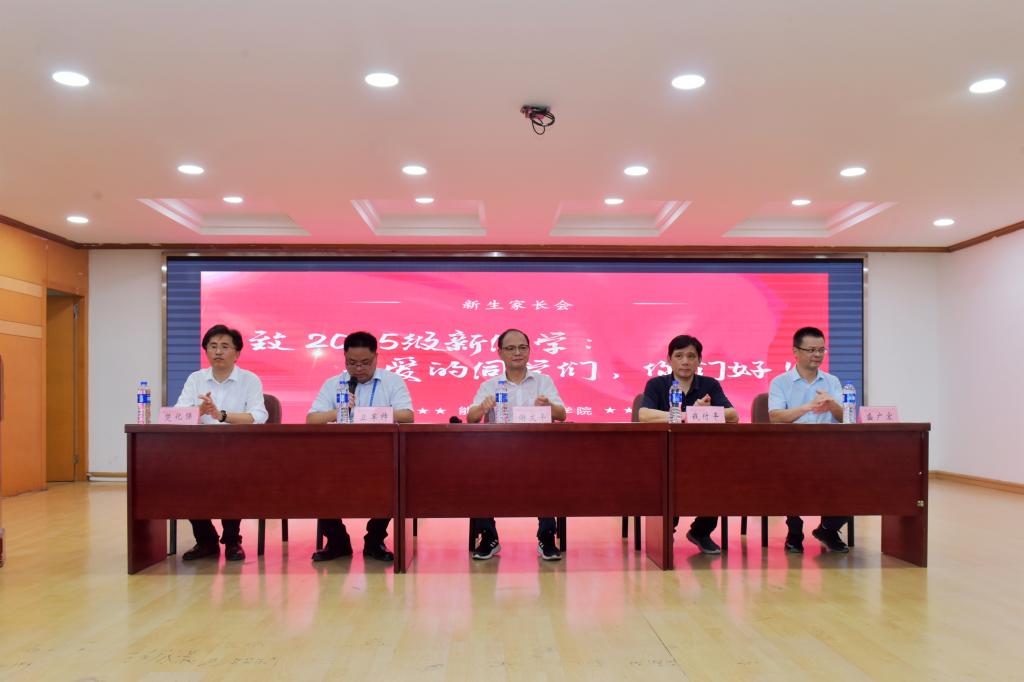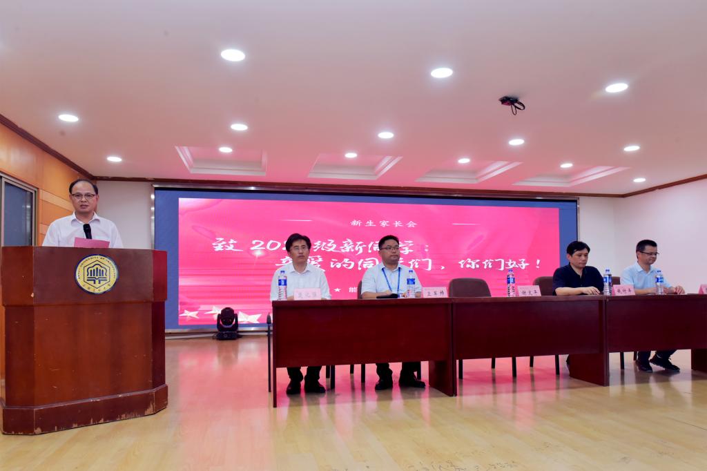于9月6日中午在佳山校区大学生活动中心召开2025级新生家长会,学院领导、系部主任、班主任及辅导员与近500名新生家长面对面交流,共同助力新生开启大学新篇章。会议由院党委副书记、副院长卫军帅主持。