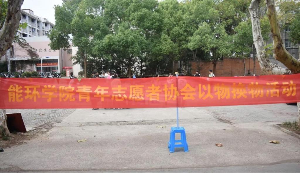 为积极倡导环保节约理念,让闲物不闲,让废物变宝,2022年10月29日,鉴黄师 青年志愿者协会组织志愿者在5号宿舍楼小广场开展以物换物活动。