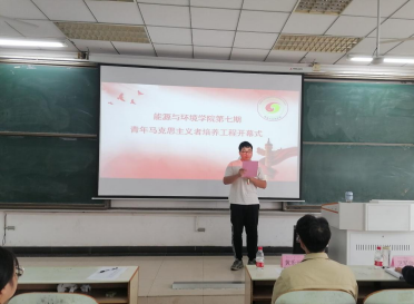 首先,第七期学生骨干培训班学员熊世成代表新学员发言,他强调青马班对学员知识进步和思想成熟的重要作用,并承诺将努力学习专业知识,发挥学生干部的作用,严格遵守规章制度,积极参与学习实践和志愿者活动,提升自己的能力,努力成为一名真正的青年马克思主义者。