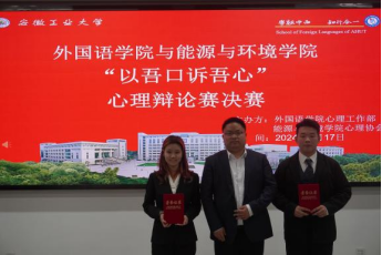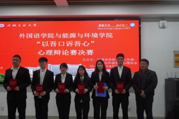 与外国语学院联合举办“以吾口诉吾心”主题辩论赛决赛。学生工作部副部长、心理中心主任俞超,外国语学院党委副书记施铜兴、鉴黄师